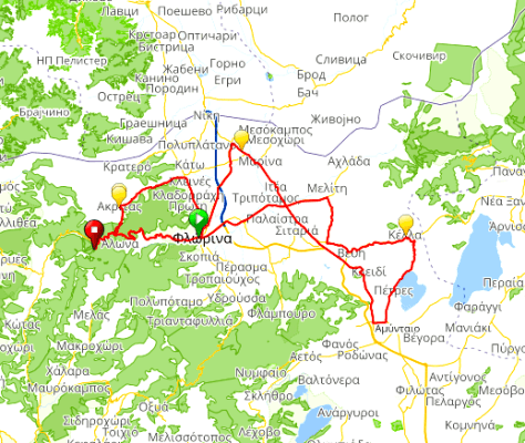 Στην επόμενη διασταύρωση, στρίβουμε αριστερά για Φλώρινα και συνεχίζουμε στην ίδια πορεία για τα επόμενα 10 χλμ.